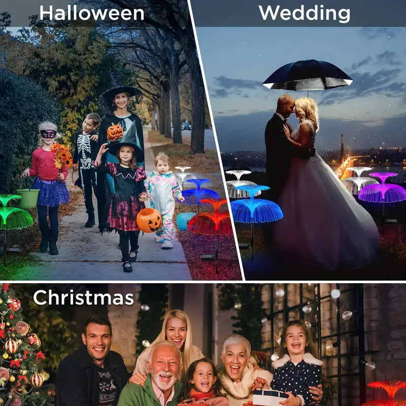 - 【7 Color Changing & IP65 Waterproof】: These solar garden lights have RGB 7 color changing and great light transmission. The upgraded light beads are brighter and beautiful. Solar jellyfish lights can emit brilliant colors and create a warm and romantic atmosphere. The solar outdoor lights are IP65 waterproof, no need to worry about rain, snow, frost or sleet. Perfect for outdoor decorations!