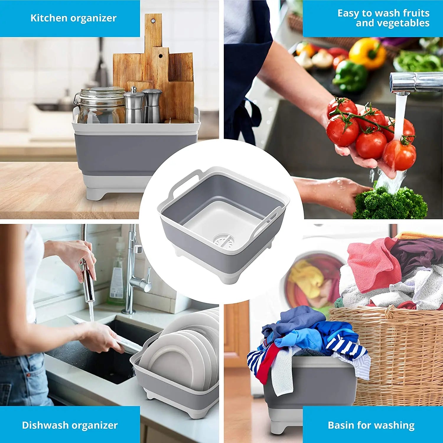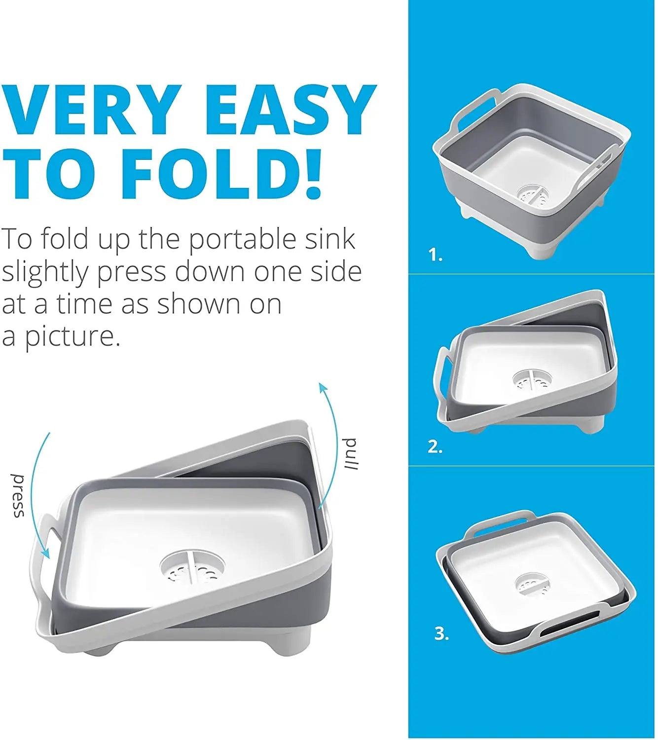 - Designed with convenience in mind, this basin easily folds for compact storage and portability, making it an ideal companion for outdoor camping, travel, or any kitchen space where efficient storage is essential.