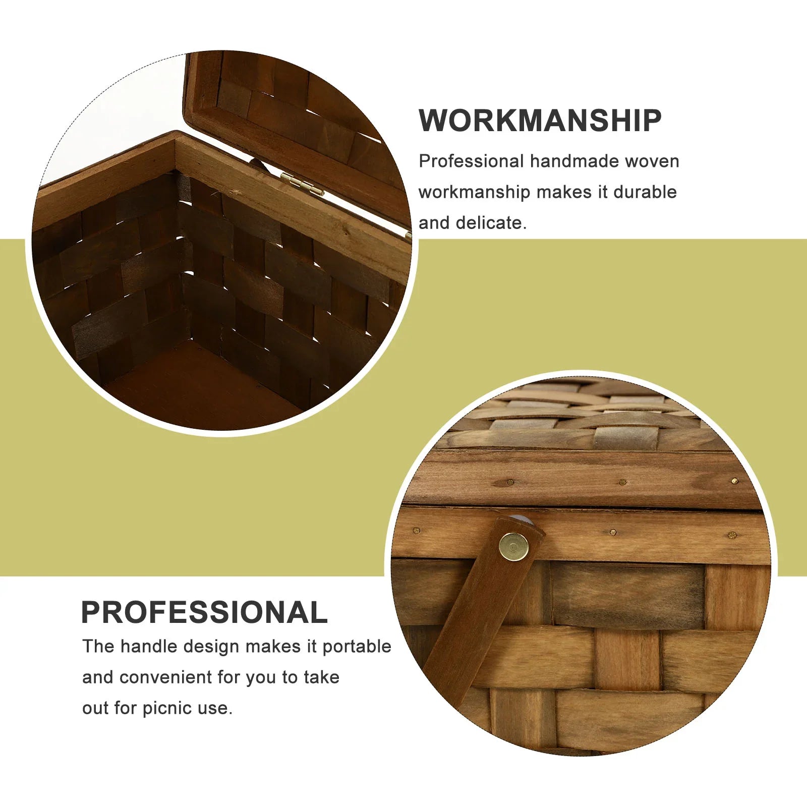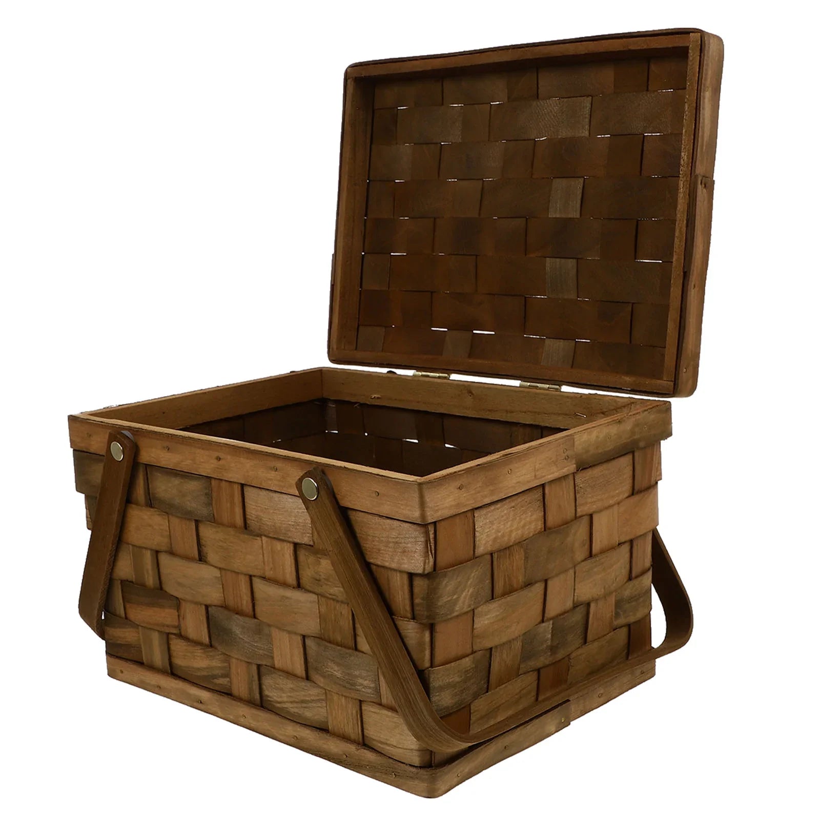 Stylish wooden woven basket with lid, perfect for picnics and home decor.