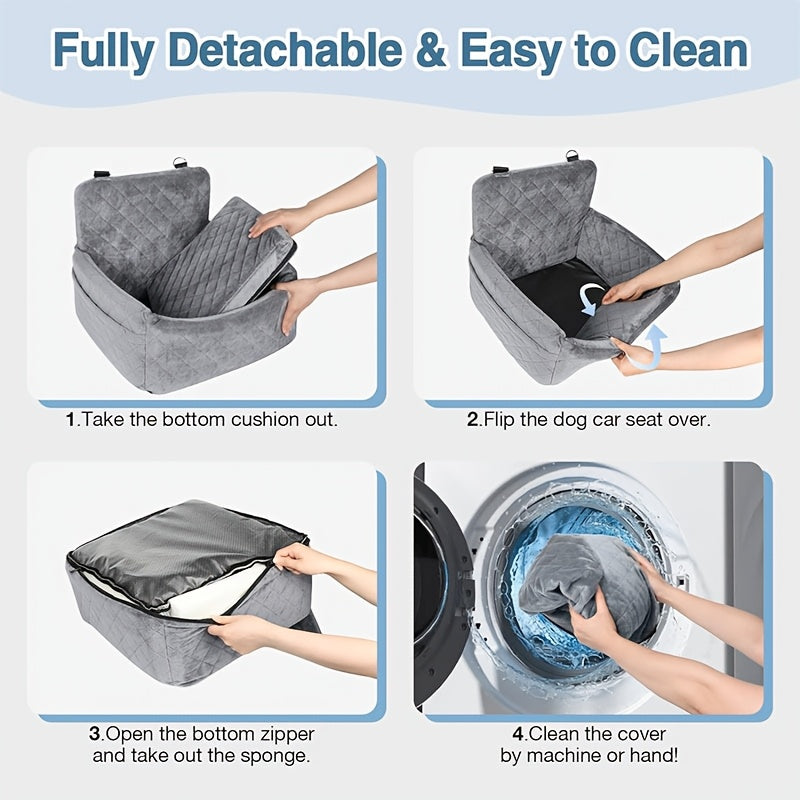 The  Deluxe Portable Dog Car Seat is designed to ensure safe and stress-free travels with your pet. Its sturdy frame and built-in safety strap help keep your small or medium dog secure throughout the ride. Made with breathable fabric and easy-to-clean polyester blend, it provides both comfort and convenience.