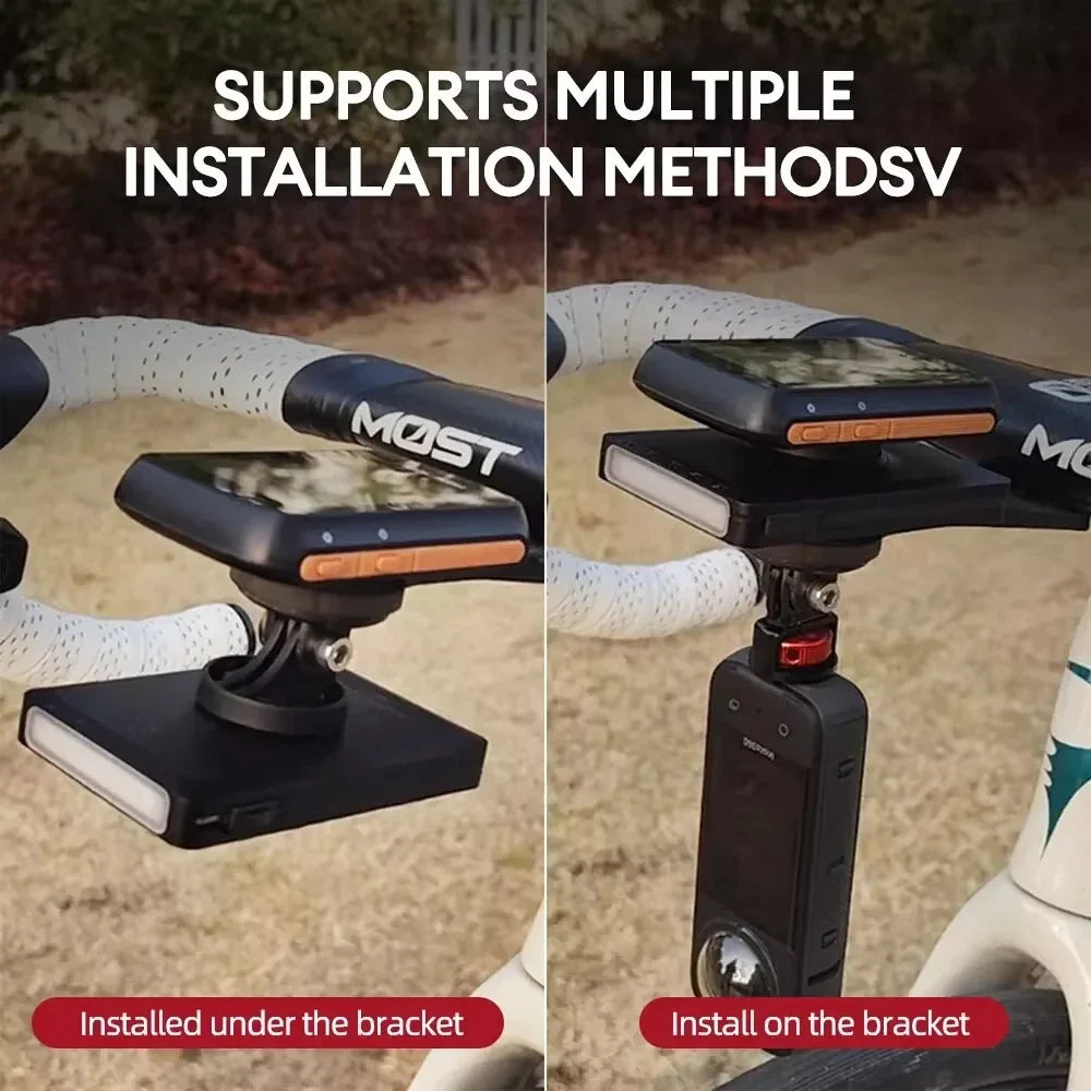 Equipped with Type-C USB charging and intelligent sensing, this light automatically adjusts brightness based on your movement and environment—providing optimal illumination while conserving power. Its versatile mounting design allows it to sit seamlessly beneath your GPS or action camera setup, making it a clean and efficient addition to your cycling gear. Whether commuting or cruising at night, this headlight keeps your path lit and your cockpit clutter-free.