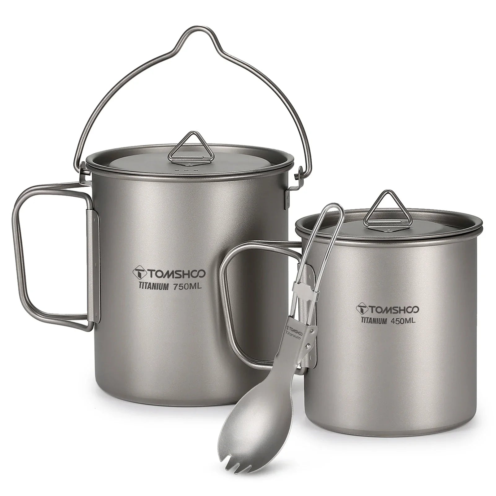 Complete 3PCS Set: Includes 750ml pot, 450ml cup, and folding spork—ideal for cooking and eating on the trail