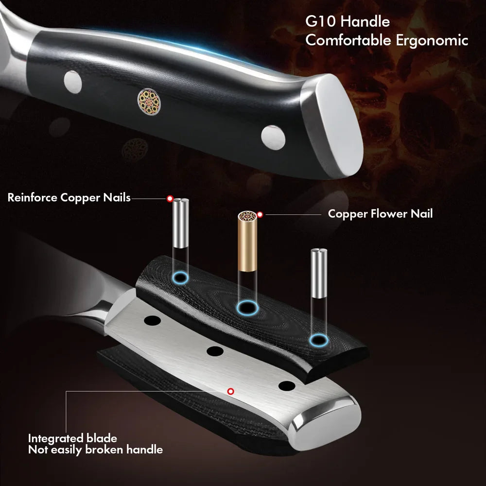 VG10 Steel Core: Offers razor-sharp performance and excellent durability