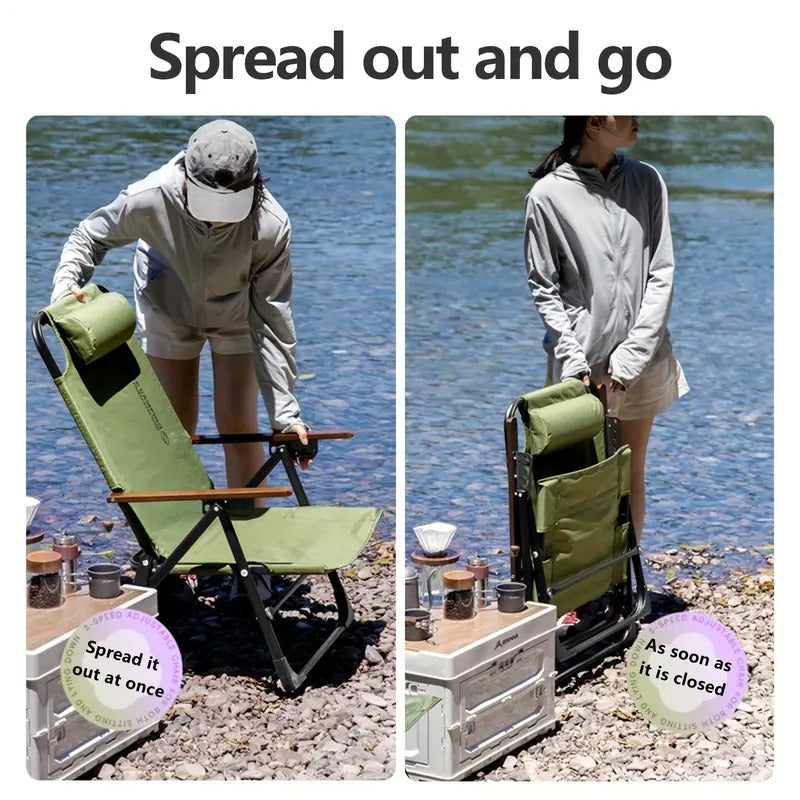 The  Folding Chair with Adjustable Height and Head Support is designed for comfort and versatility in both outdoor and indoor settings. Made with a strong iron alloy frame and durable oxford cloth seat, it provides reliable support for adults during camping, patio lounging, or backyard relaxation. Its adjustable reclining function with handle control allows you to find the perfect position, while the foldable design makes it easy to carry and store.