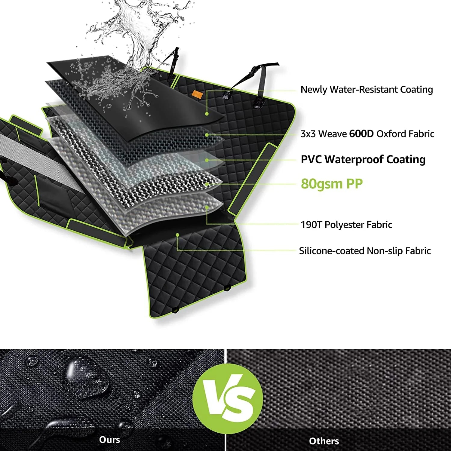 6-in-1 Waterproof Dog Car Seat Cover for Back Seat Hammock Style Green
