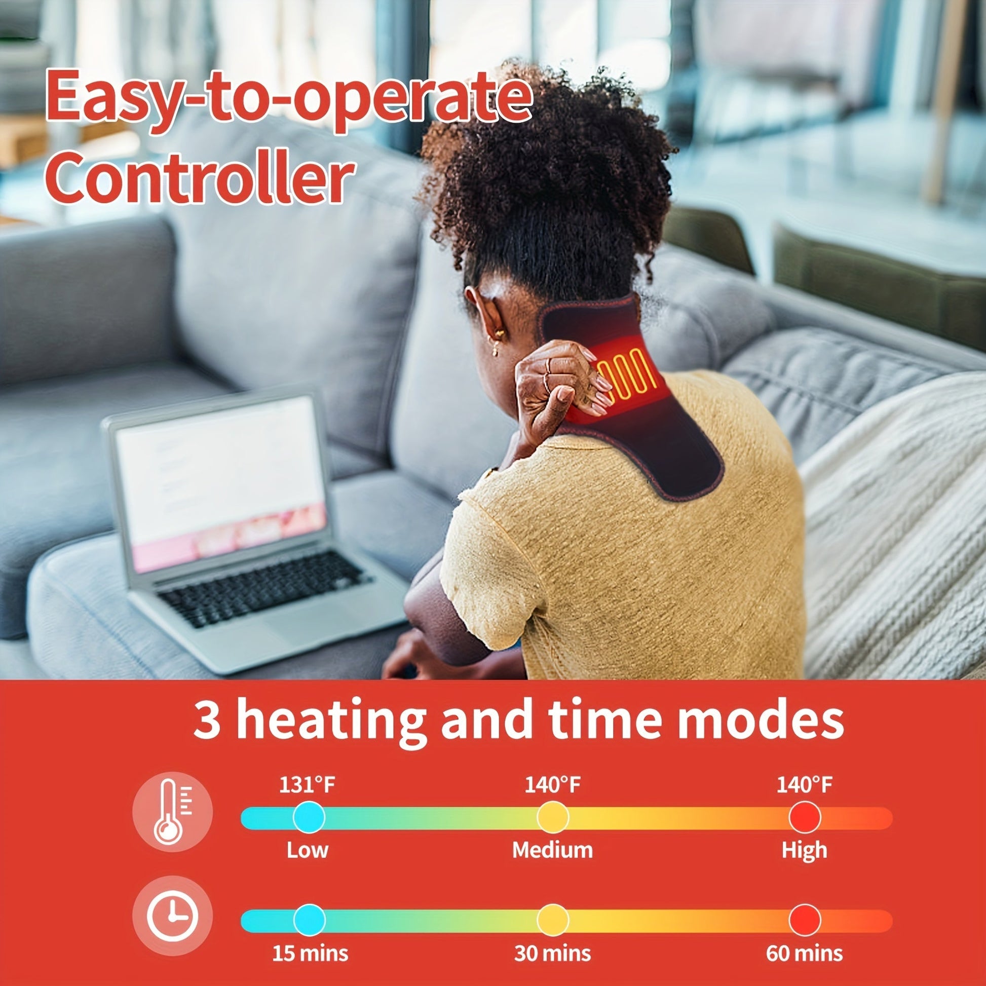 Experience soothing relief with the USB Heated Neck Wrap, designed for ultimate comfort and relaxation with adjustable support and massage features.