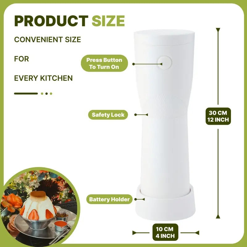 The Handheld Battery Ice Crusher is your go-to solution for making instant shaved ice wherever you are. Its compact and lightweight build makes it perfect for travel, camping, or quick kitchen use. Powered by batteries, it’s designed to operate without the need for outlets convenient for any outdoor event.
