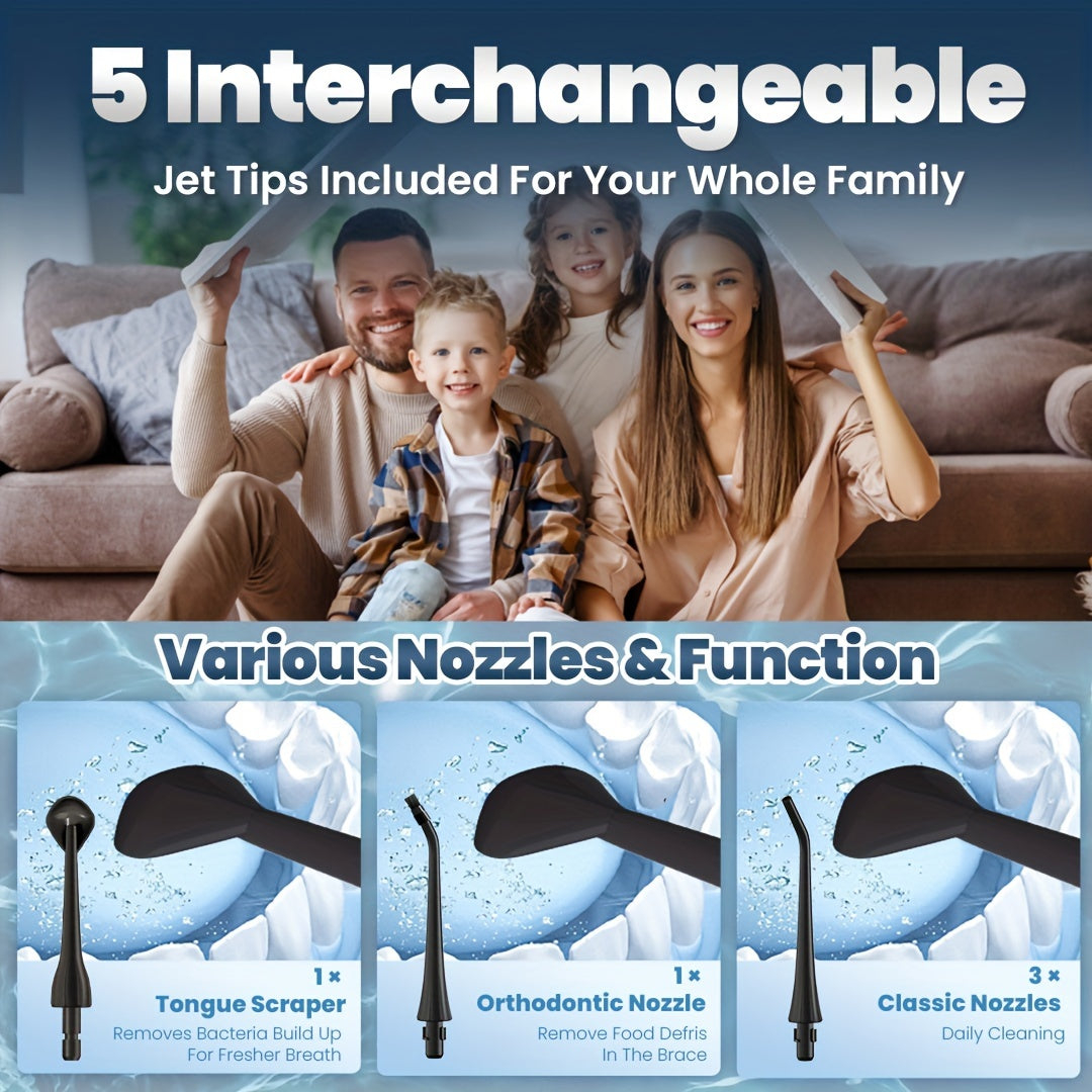 The NNETM cordless water dental flosser offers a powerful and customizable cleaning experience. With 4 cleaning modes and 5 interchangeable jet tips, it ensures a deep and thorough cleaning of your teeth and gums, removing plaque and improving oral hygiene. The USB-powered rechargeable battery delivers long-lasting performance, while its compact and portable design makes it ideal for both home use and travel. Keep your smile healthy with this easy-to-use oral irrigator.