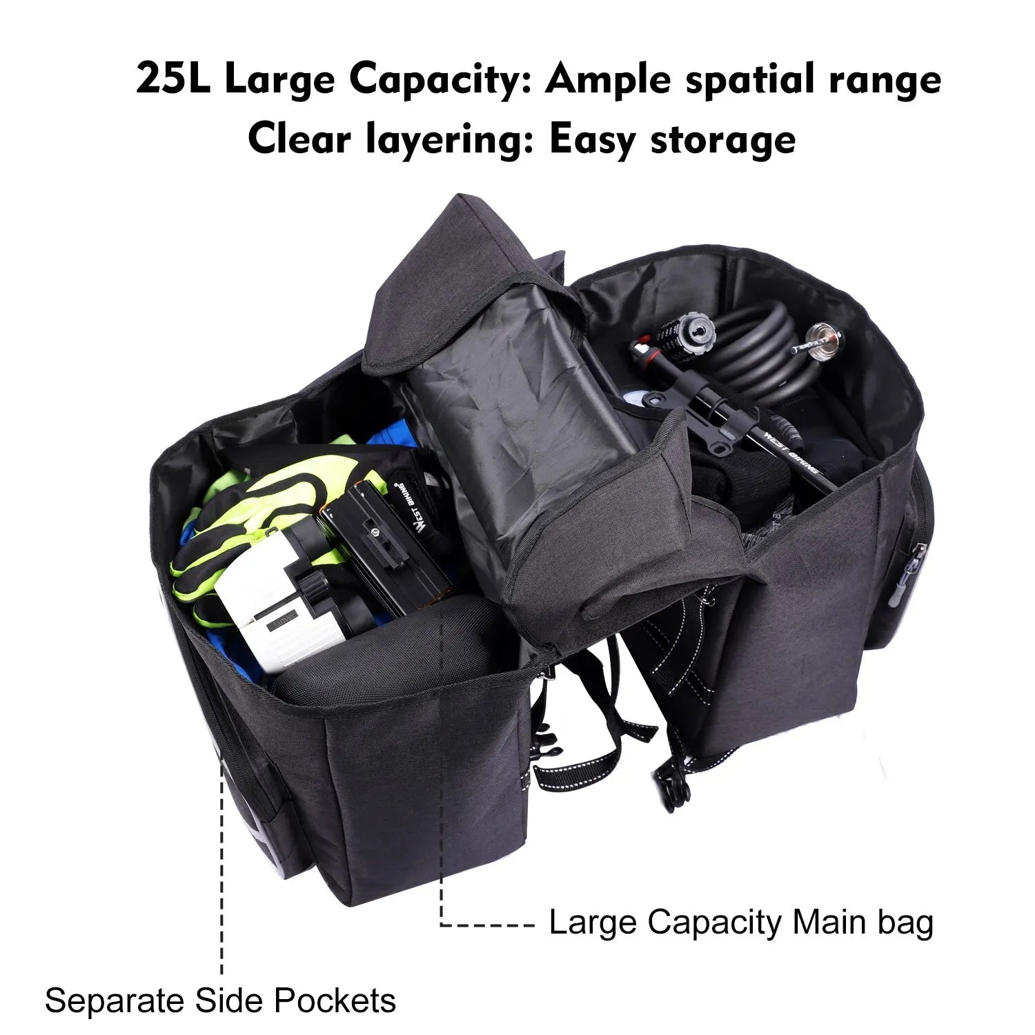Gear up for your next cycling adventure with the 25L Rear Seat Double Pannier Cycling Bag, a perfect companion for riders who need reliable, organized storage on the go. Constructed from rugged 300D polyester, this bag is both lightweight and highly durable, capable of withstanding daily wear, long rides, and unpredictable weather.