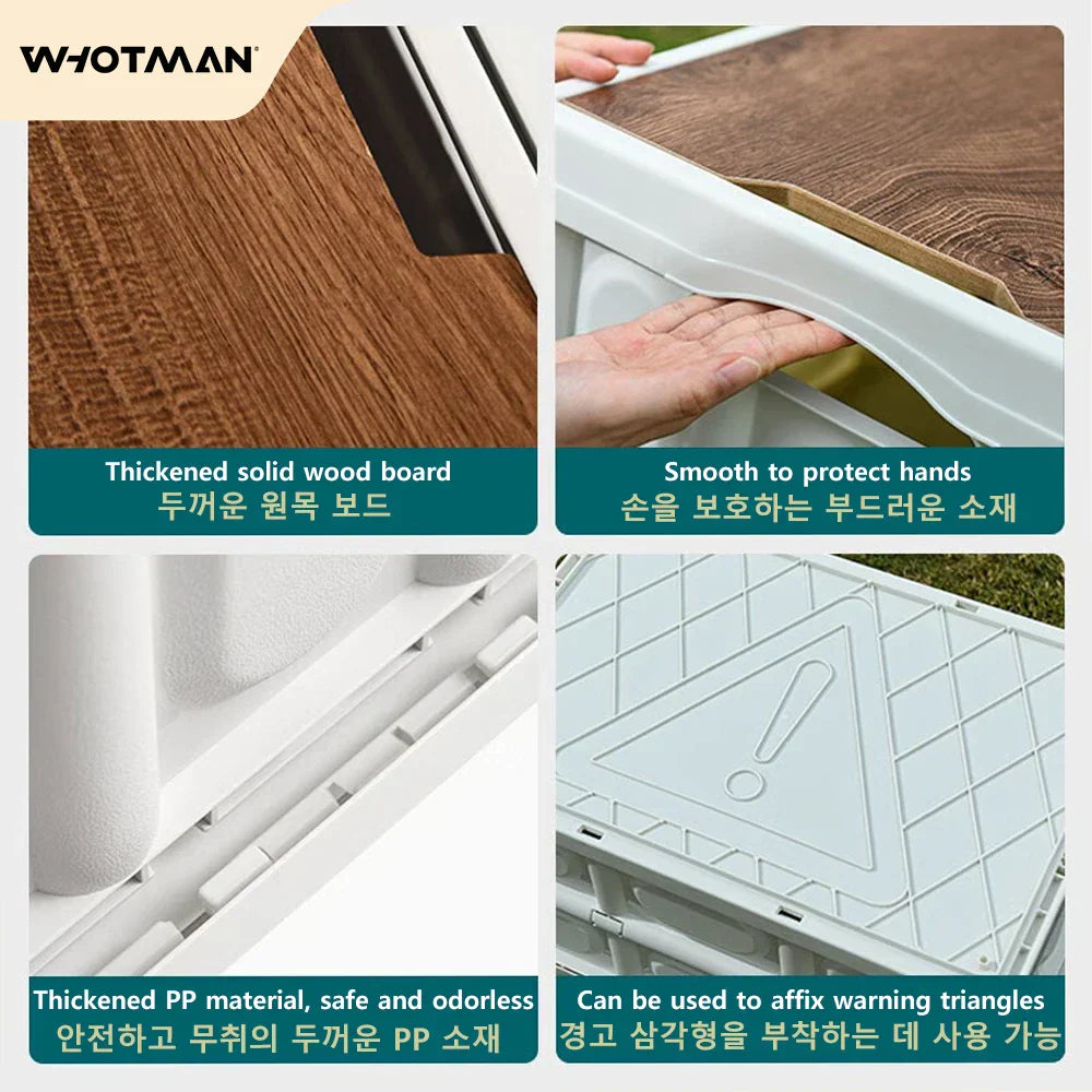 - Thickened Solid Wood Board: The planks of the folding box are made of thickened solid wood, adding to its strength and offering the functionality of a table.