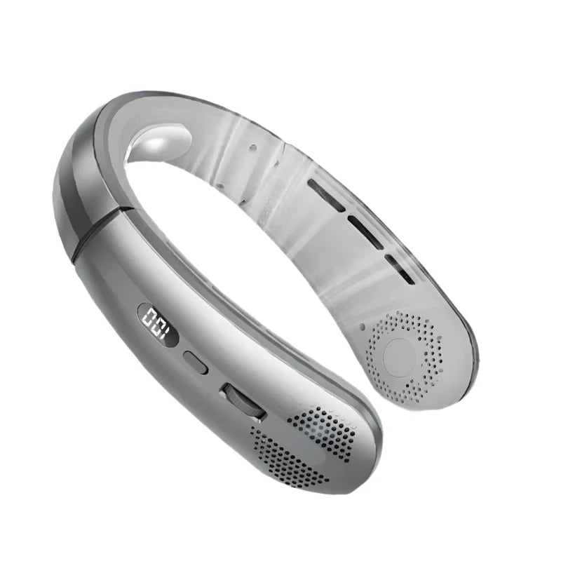 Stay cool and hands-free with the NNEOBA portable bladeless neck fan, featuring adjustable speeds, USB charging, and LED display.