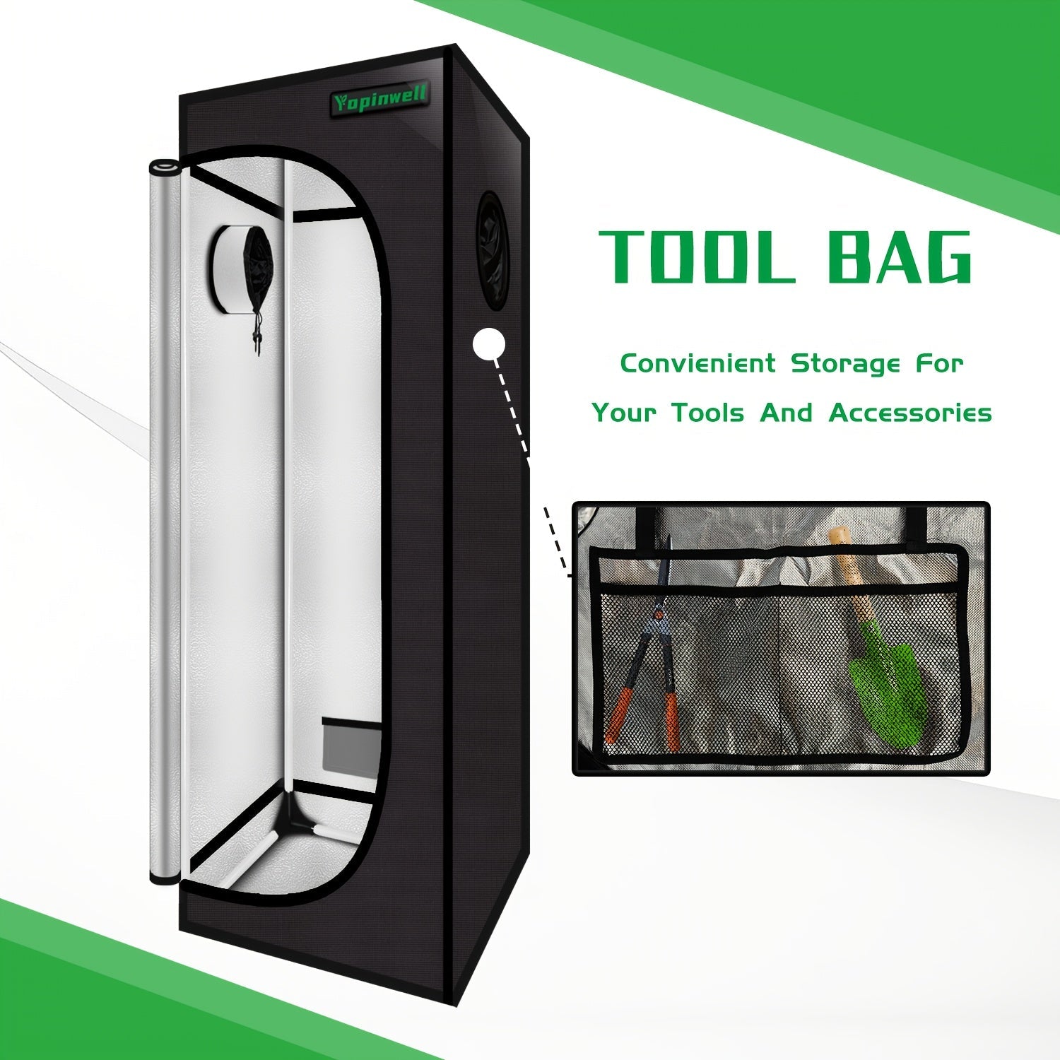 The  42x42x121cm High Reflective Mylar Grow Tent is built to support optimal plant growth indoors. Designed with 600D oxford fabric and lined with high-reflective mylar, this tent ensures superior light retention and efficiency. It includes an observation window for convenient plant monitoring, a removable floor tray for easy cleaning, and a tool bag for quick access to gardening essentials.
